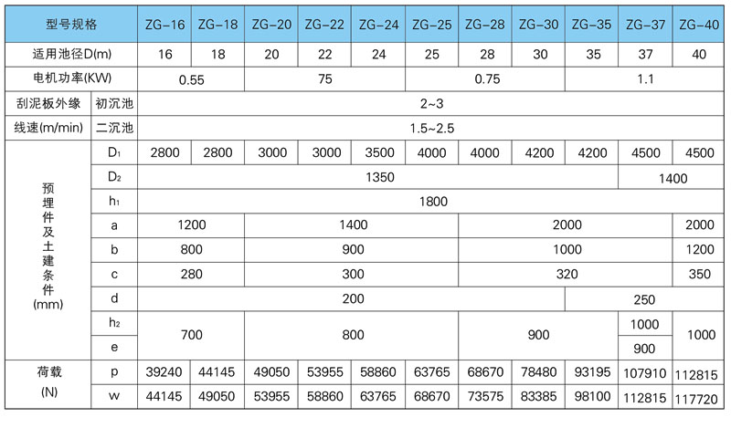 ZG型周邊傳動刮泥機適用于給排水工程中水廠或污水處理廠直徑較大(Φ>15m)的輻流式(圓形)沉淀池的刮泥和撇渣。
